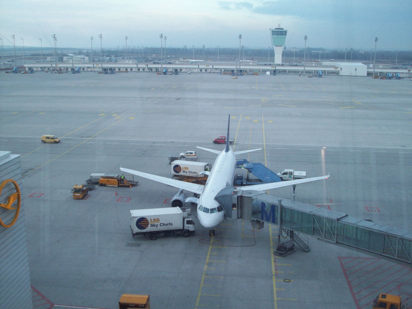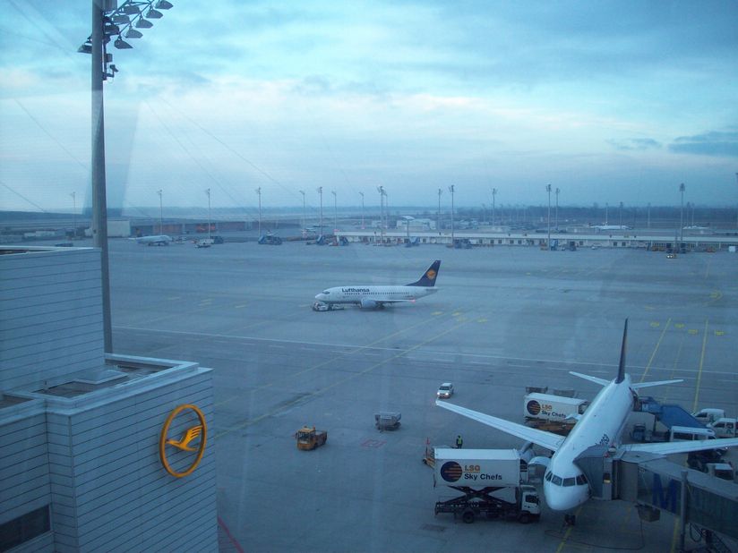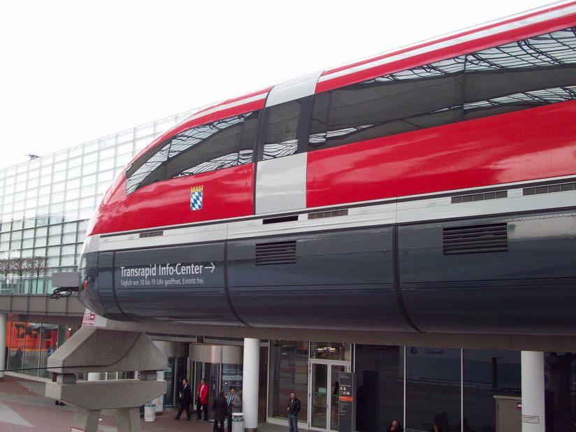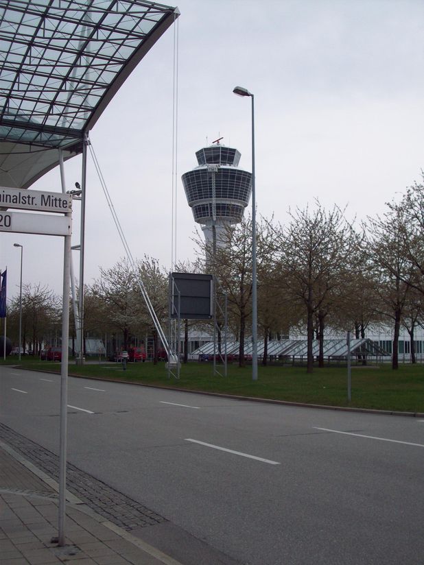 <<< Flughafen Plaza zwischen Terminal 1 und 2 Modell des Transrapid, der den Hauptbahnhof und Flughafen verbinden sollte >>> |