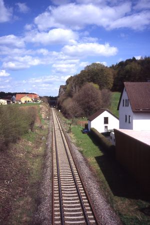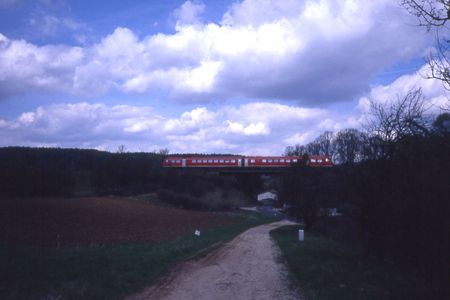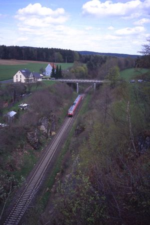 | Zug aus Richtung Amberg (in der Nähe der Osterhöhle) | |